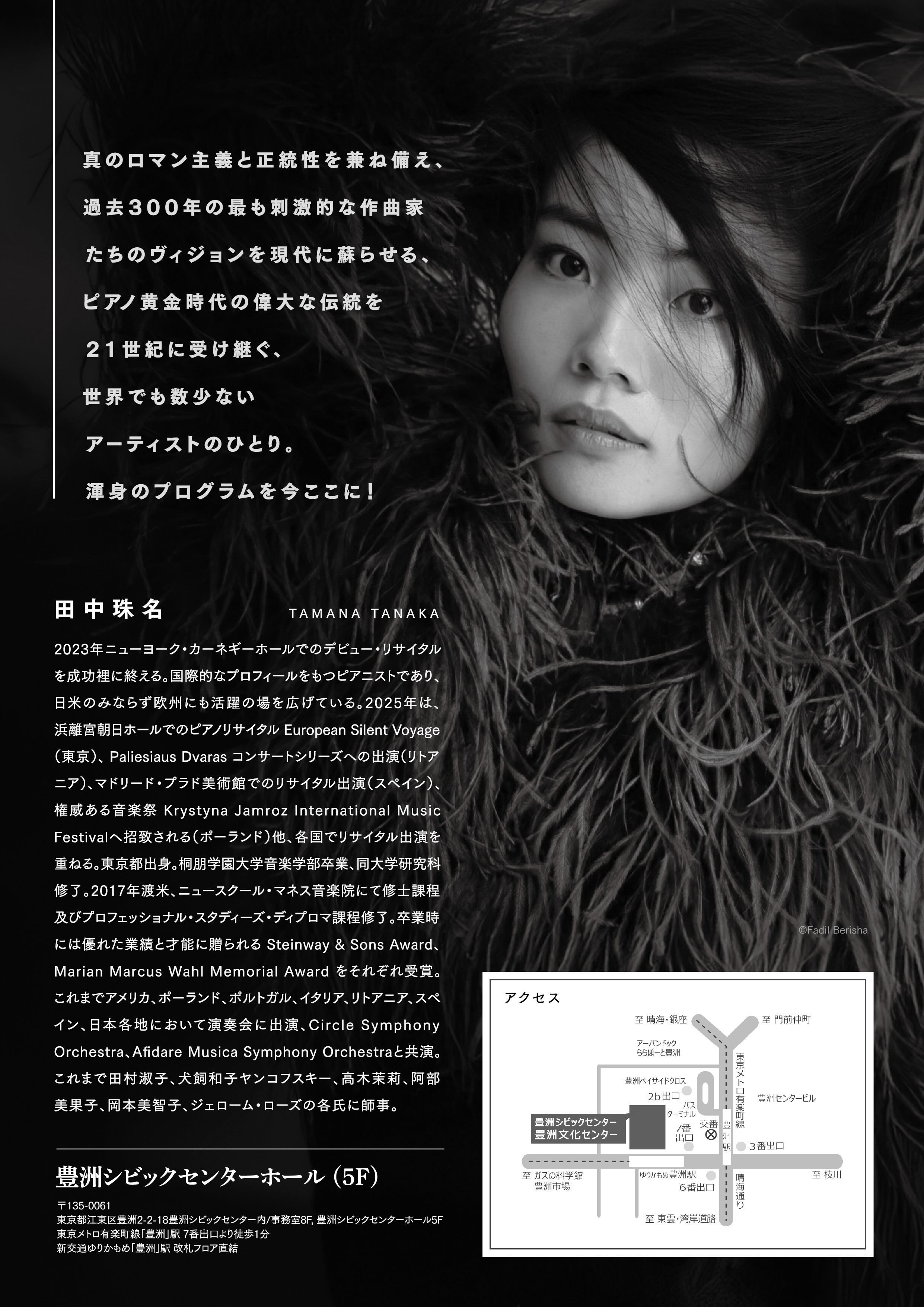 ニューヨークで長らく研鑽を積み現在ヨーロッパを拠点に活動中の田中珠名(Tamana Tanaka)が豊洲に初登場!