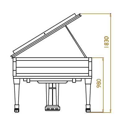 これはファツィオリのピアノの中で一番小型のものである。 その小さいスケールにもかかわらず音は力強くクリアで、芳醇に響き渡る。 このピアノは、狭いスペースの中でも、 グランドピアノの音とアクションに関して妥協したくない人たちのためにある。